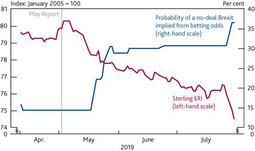 - Sterling has depreciated as the perceived possibility of a no-deal Brexit has increased