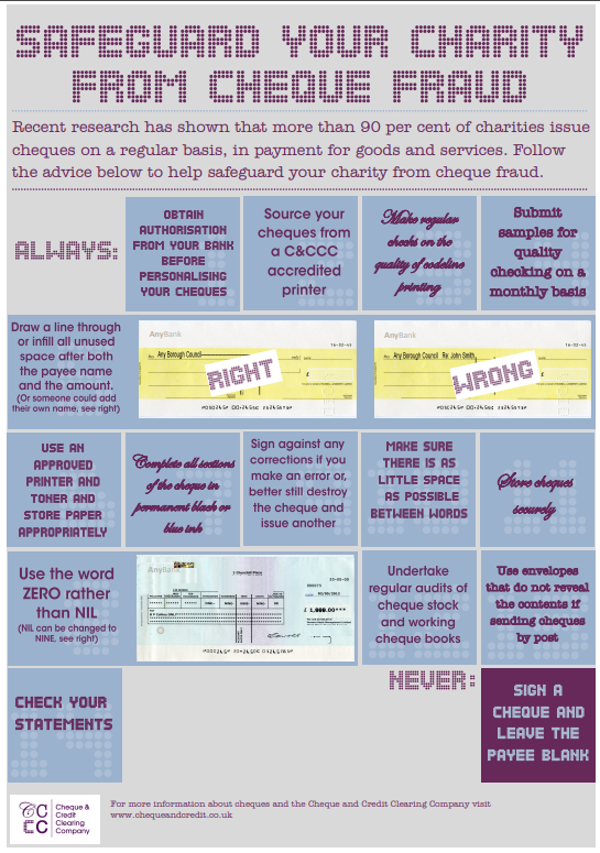 The Cheque and Credit Clearing Company (C&CCC) has published a new fraud prevention guide to help charities safeguard themselves from fraud when paying by cheque.