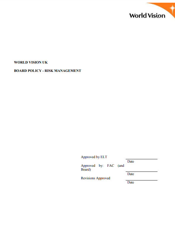 This Policy sets out a framework for Risk Management as approved by the WVUK Board. The Policy seeks to reflect best practice for managing businesses as well as enabling the Board to discharge its reporting obligations under Charity Commission regulations and Company Law.