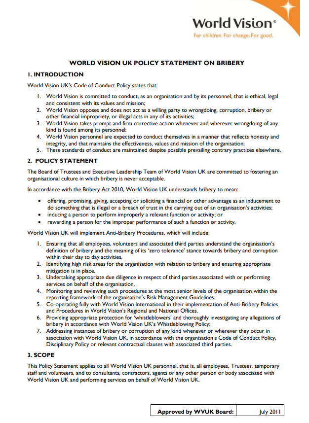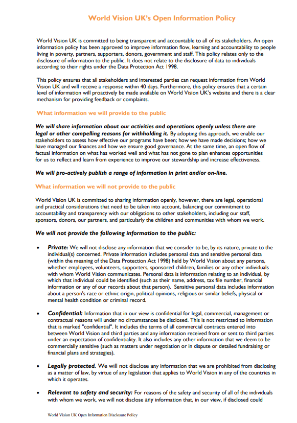 This policy ensures that all stakeholders and interested parties can request information from World Vision UK and will receive a response within 40 days.