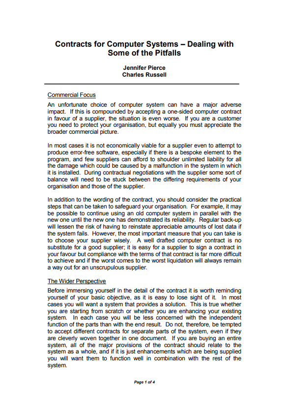 Contracts for Computer Systems – Dealing with Some of the Pitfalls
