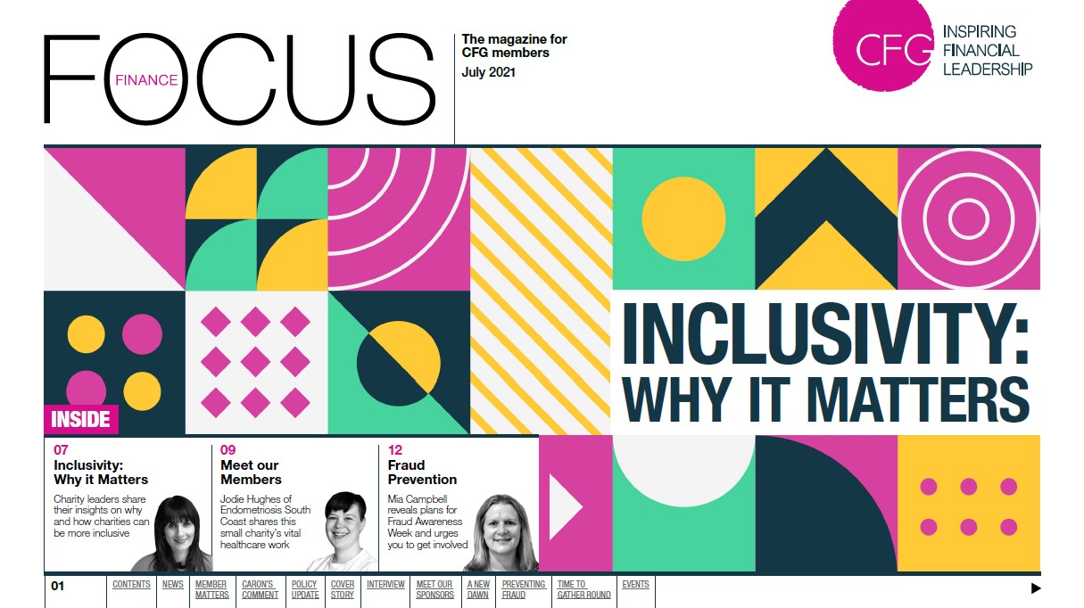 Inclusivity - why does it matter to finance professionals? We speak to charity leaders this month about equality, diversity and inclusivity (EDI). We also meet a small member charity - Jodie Hughes of Endometriosis South Coast - about their challenges and achievements in the past year. Plus, we reflect on the power of collaboration within CFG and the wider sector.