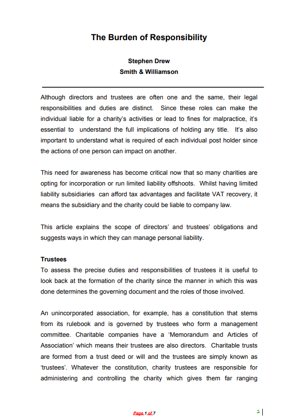 Directors and Trustees have very distinct duties and legal responsibilities. This document outlines the implications of holding each title and the requirements of the post holder.