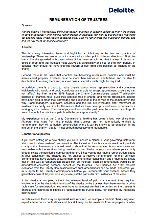 Addresses the issue of paying trustees, and considers the circumstances in which it might be possible to do so.
