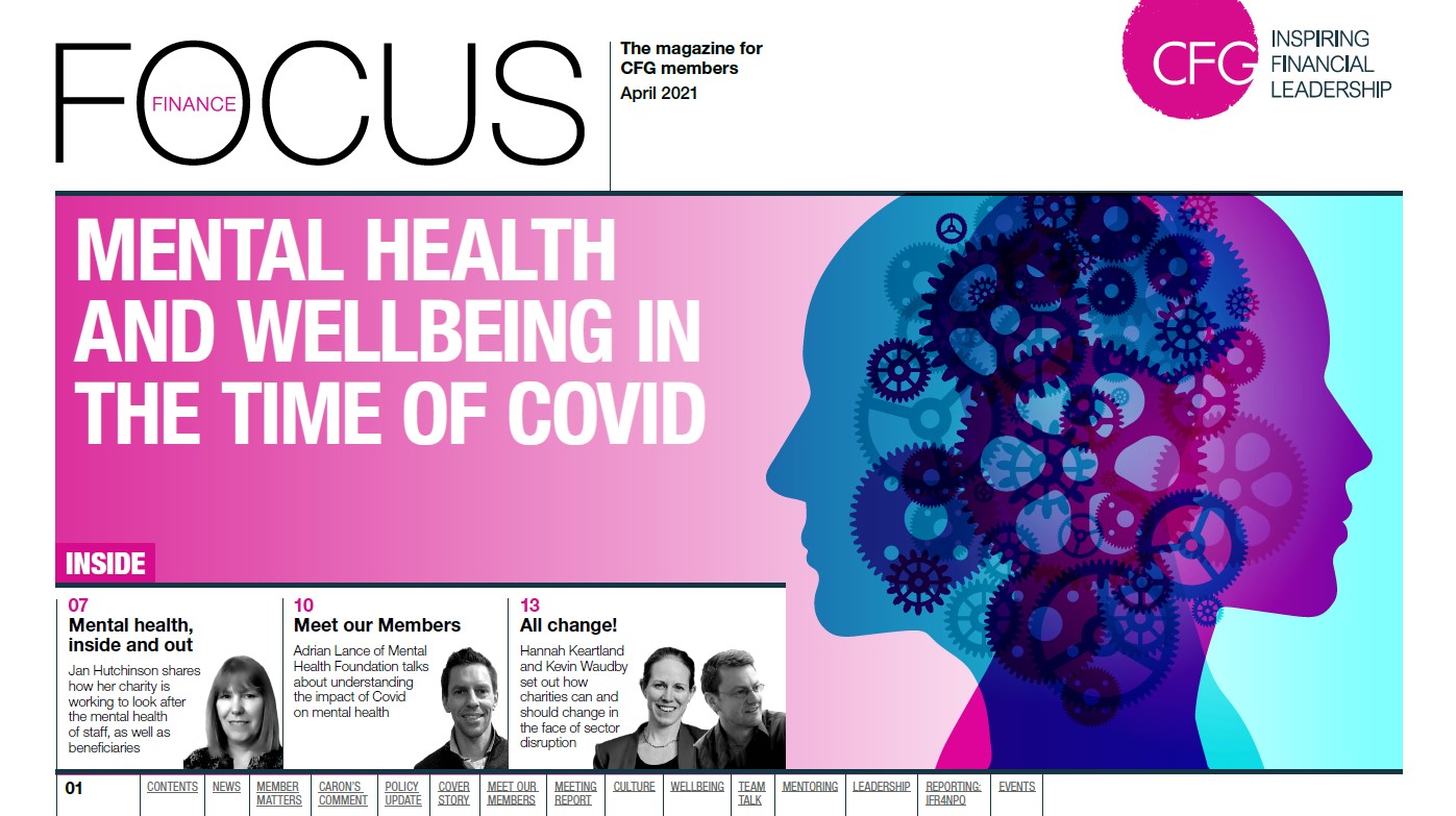 Welcome to the April 2021 edition of Finance Focus. This month we take a look at mental health and wellbeing in the run up to Mental Health Awareness Week in May. In this edition, we hear from Jan Hutchinson from Centre for Mental Health and speak to Adrian Lance from the Mental Health Foundation.