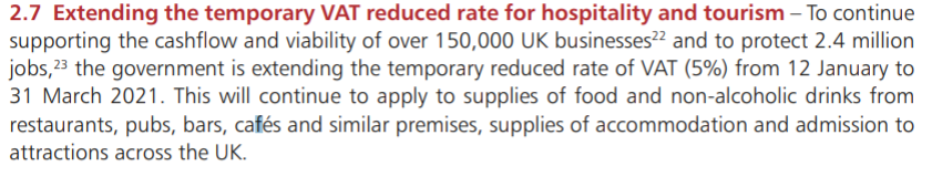 Extension of temporary VAT reduced rate for hospitality and tourism